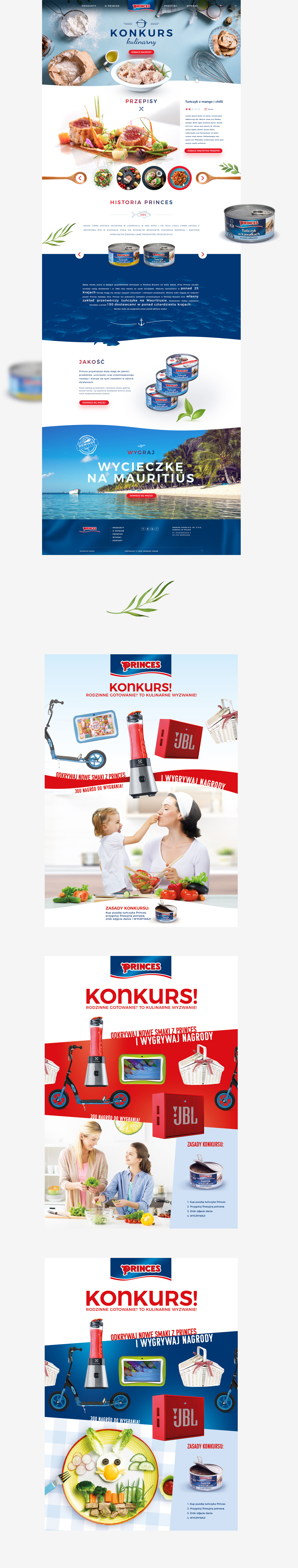 Layouts of promotional contest website for Princes food brand plus few advertorial Key Visuals.