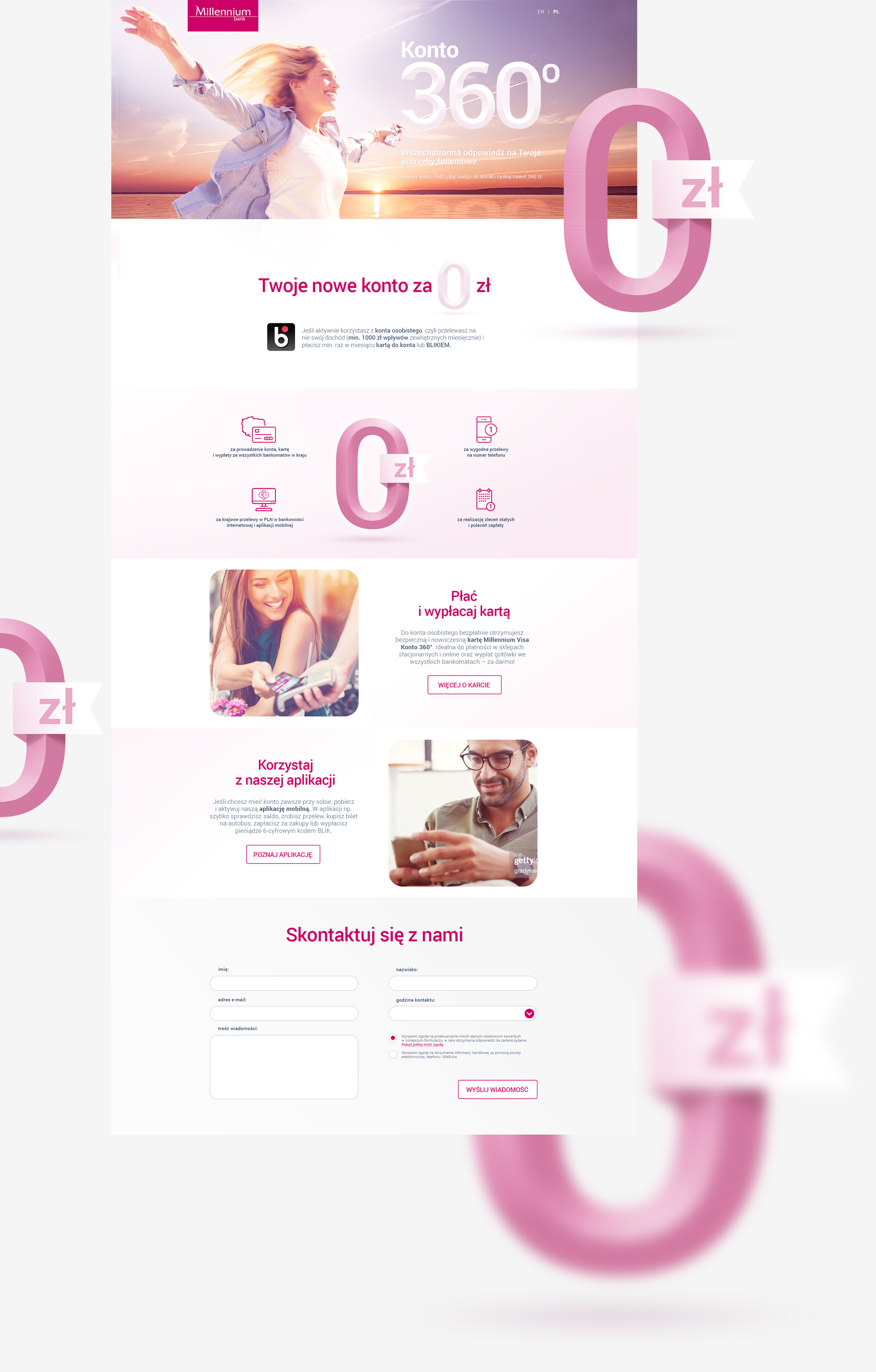 Promotional ebsite landing page for Millennium Bank.